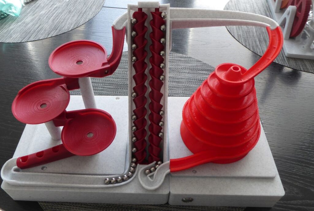 Luka hat eine neue Marble Machine designed, die die gleichen Module nutzen kann wie The Two Wheeler. Inzwischen gibt es 7 Module. (siehe https://outofmarbles.com/ )