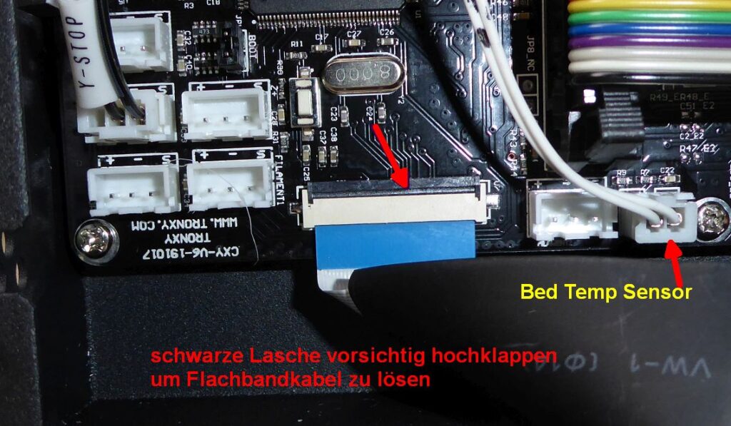 Das (neue) Flachbandkabel zum Druckkopf eingesteckt.