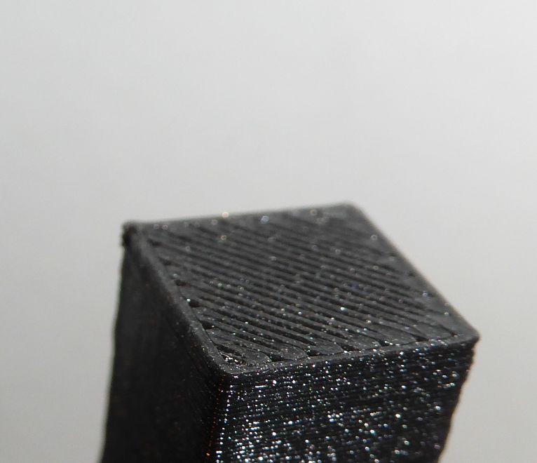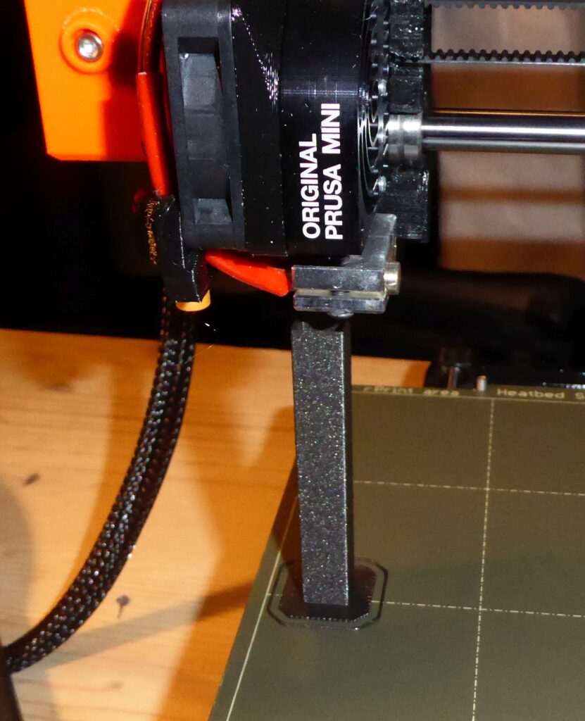 Ich spare mir, jetzt hier zig Fotos von Testobjekten zu posten, die alle bestens aussehen. Aber EINE Sache muss ich unbedingt zeigen. Und zwar aus dem Grund, weil einige „Profis“ (niemand aus Stephans Forum!) sich sehr abfällig über Bettschubser äußern und dann auch noch die Hände über dem Elitekopf zusammenschlagen, wenn der Drucker „einarmig“ ist, wie der Mini eben. Das kann ja nicht funktionieren, das muss ja Unregelmäßigkeiten geben! Das einzig Wahre sind ja nur selbstgebaute Core X/Y, meinen diese Allwissenden.