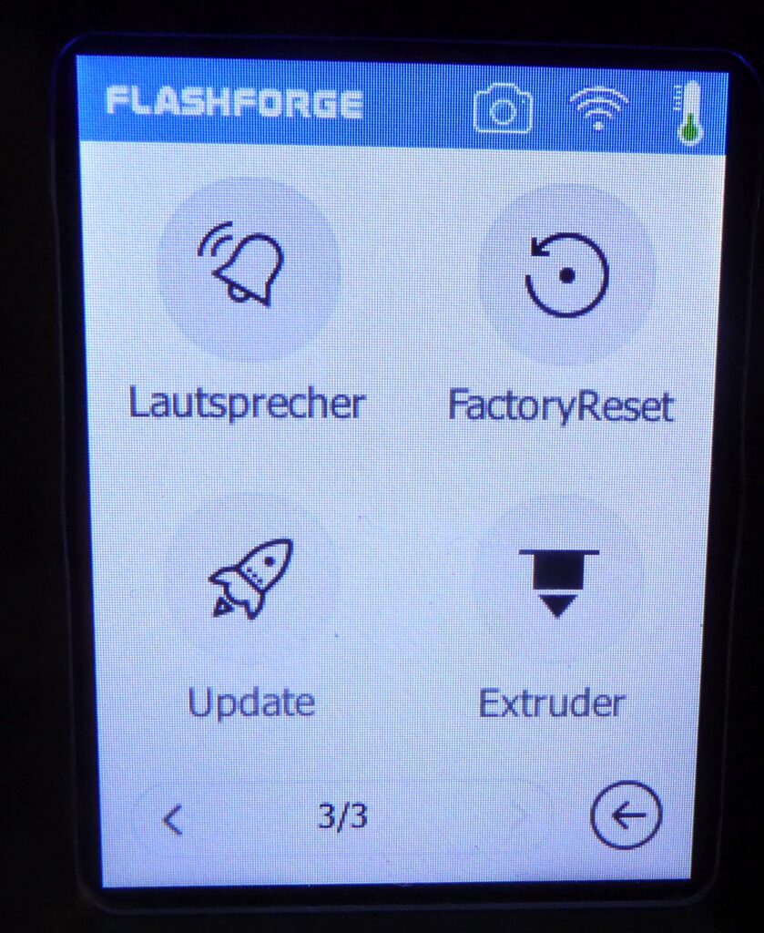 Wenn man die Flashforge Firmware drauf hat, ist der Menupunkt für die Kalibrierung der Temp Differenz leichter zu erreichen. (Vorher musste man im ABOUT-Menu 3x auf den Druckernamen tippen)