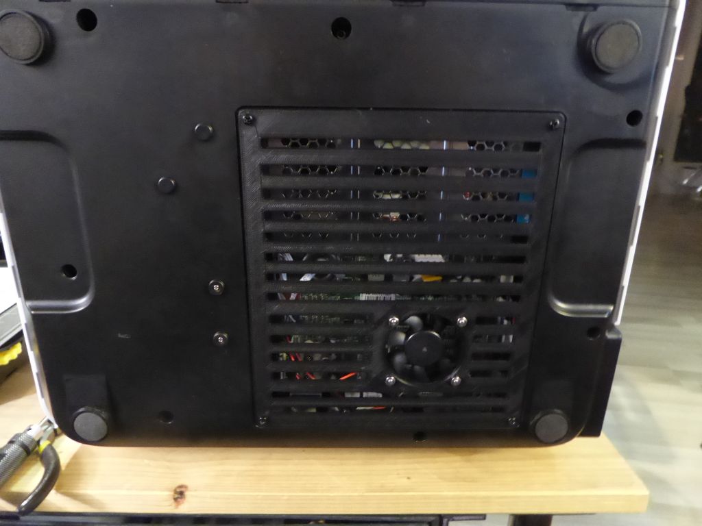 Den zu kleinen Mainboardlüfter, der erstens zu laut war, zweitens nur gegen einen Kabelbaum gepustet hat, habe ich durch einen 24V 50 x 50 x 10 Lüfter ersetzt. Dafür habe ich eine neue Bodenplatte gedruckt.