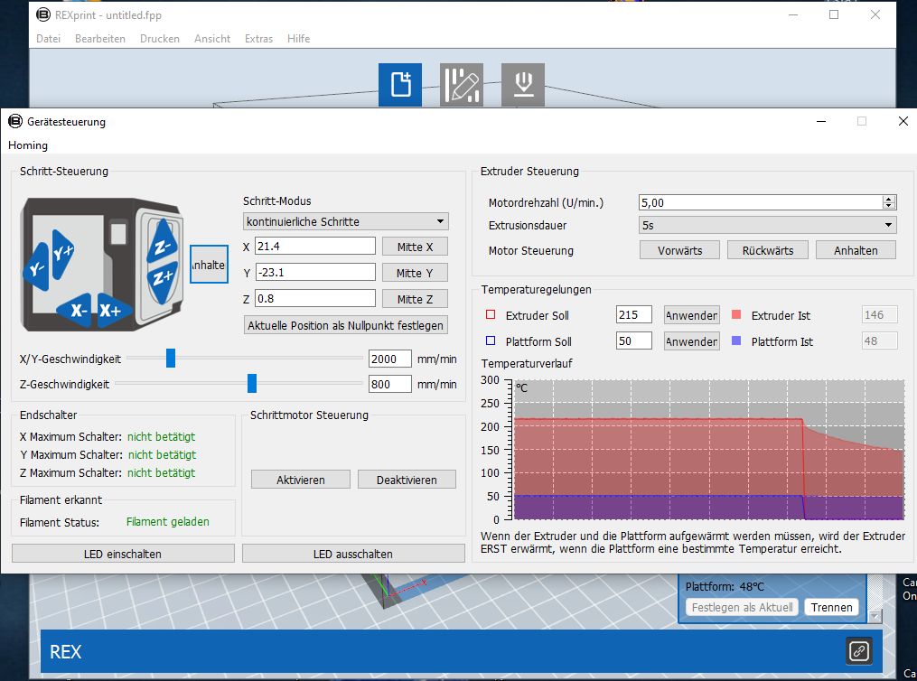 - S3D Profil vorhanden, aber Rexprint ist auch ok (wie flashprint