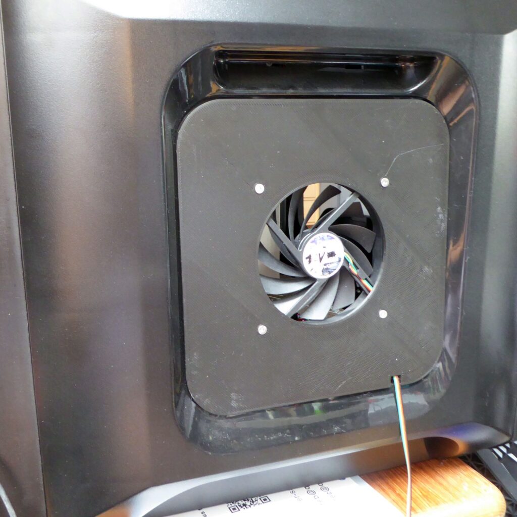 Mainboradlüfter durch 40 x 20 ersetzt (z.B. Sunon Lüfter 40x40x20mm MF40202V2-A99 DC 24V 6000 U/min 21dBA. Ist leiser und schaufelt so viel Luft wie der 40 x 10