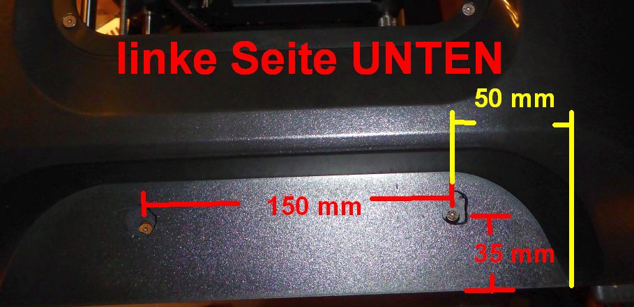 Da man das ganze Druckergehäuse zerlegen muss, um an die Schrauben heranzukommen, die das Netzteil halten, habe ich 2 Löcher in die linke Wand gebohrt. So komme ich jederzeit an die Schrauben ran. Wer nun gleich an dieser Stelle bohrt wird fündig. 😉