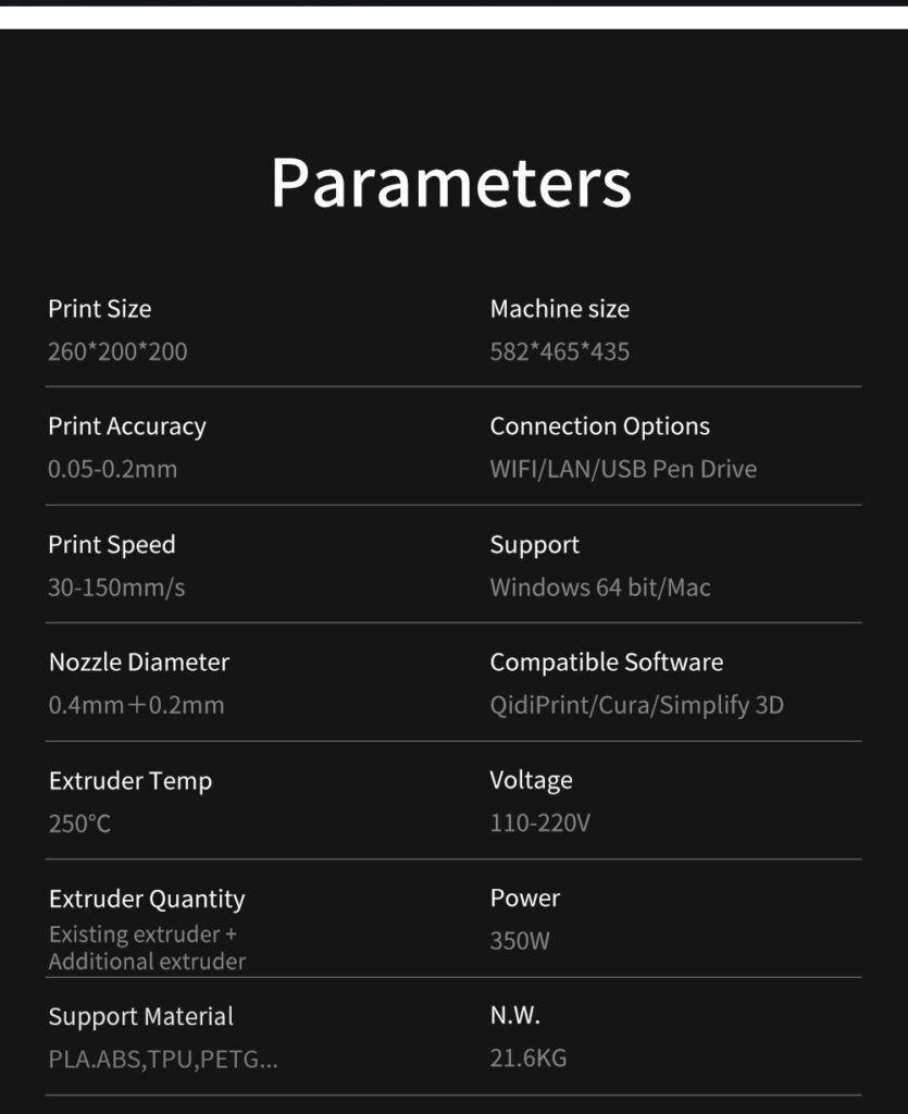 Wenn ich überhaupt einen „Kritikpunkt“ finde, er hat keinen USB-Anschluss, um ihn z.B. über einen Raspi mit Octoprint zu betreiben. Dafür hat er eben WLAN über QIDIPRINT.