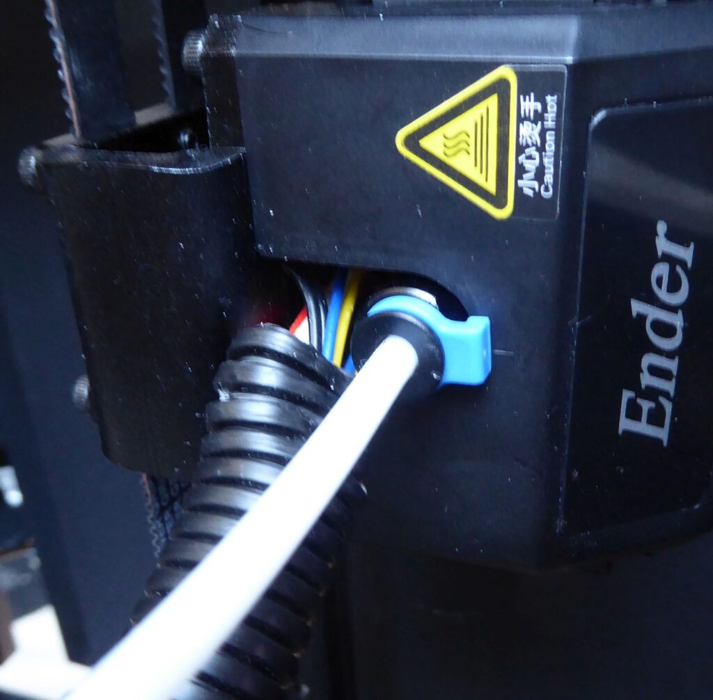 Da habe ich eine Zugentlastung gedruckt. (Die 13 g machen den Kohl auch nicht fett)